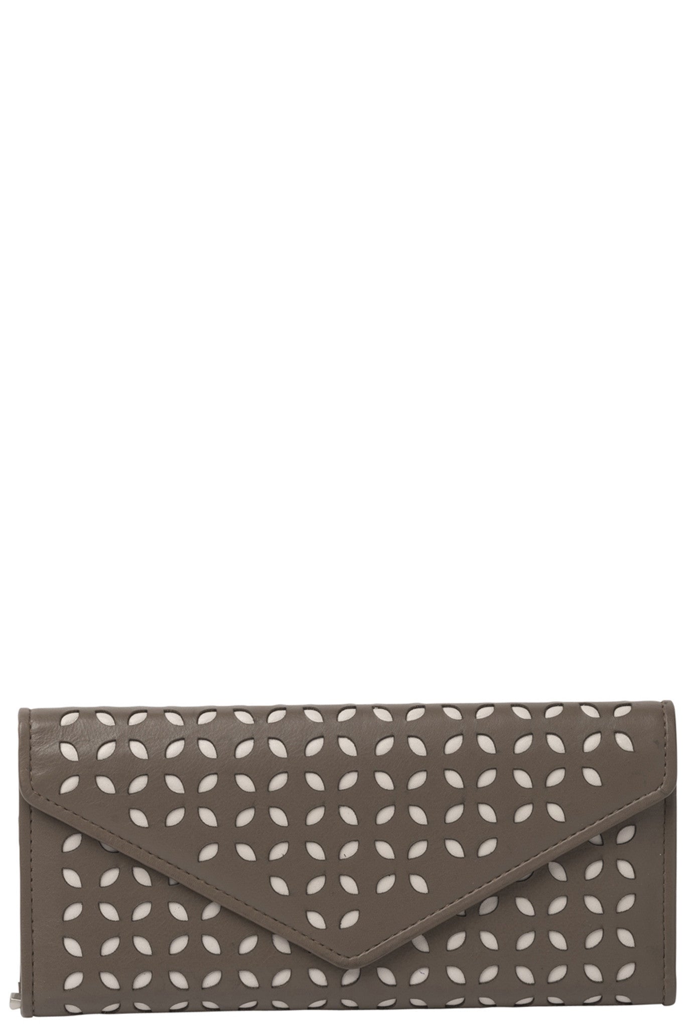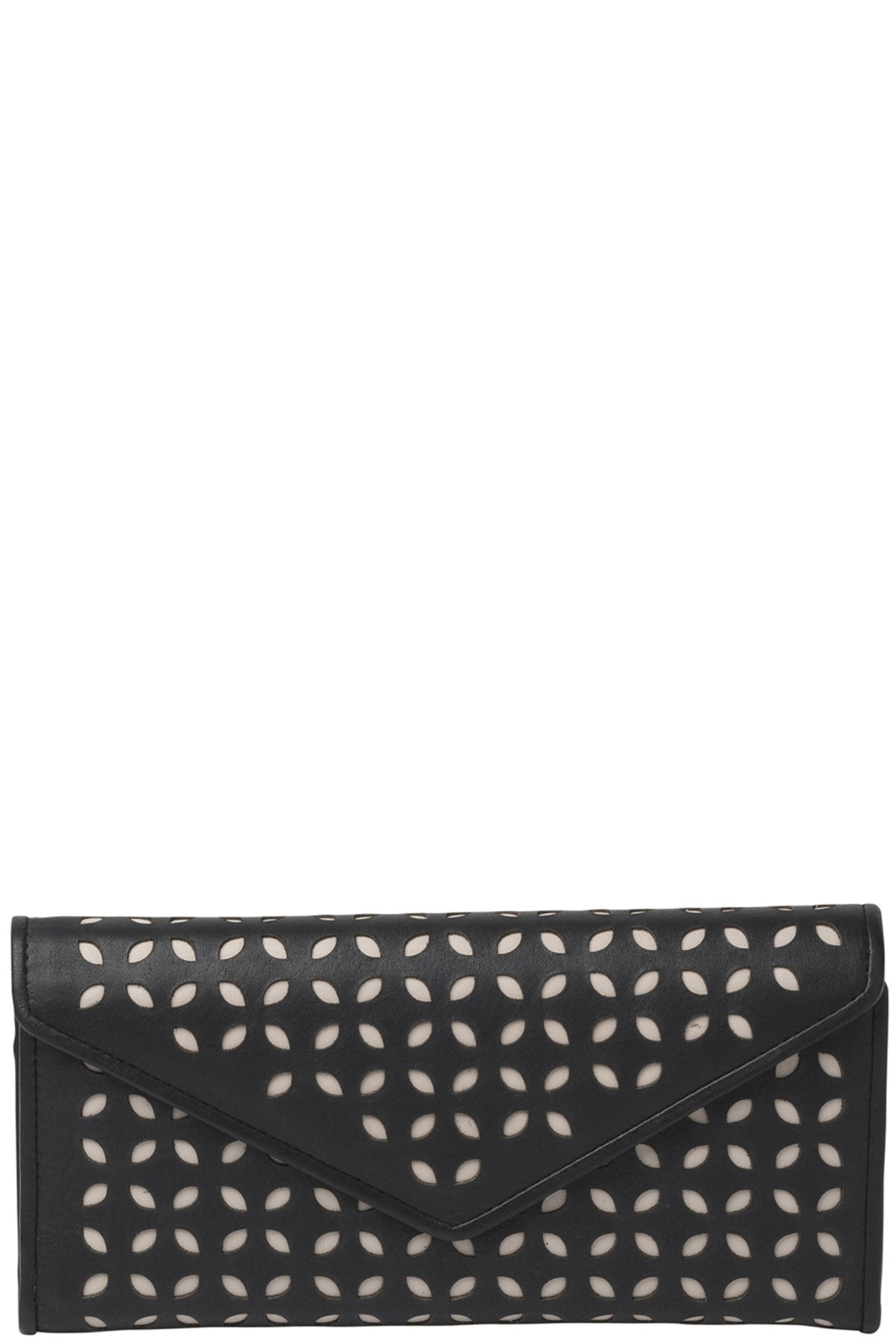 This stylish women's leather wallet is made from nappa leather and features a laser cut out design, holds 8 credit card slots, internal zipped coin section, transparent ID window and is fully lined.