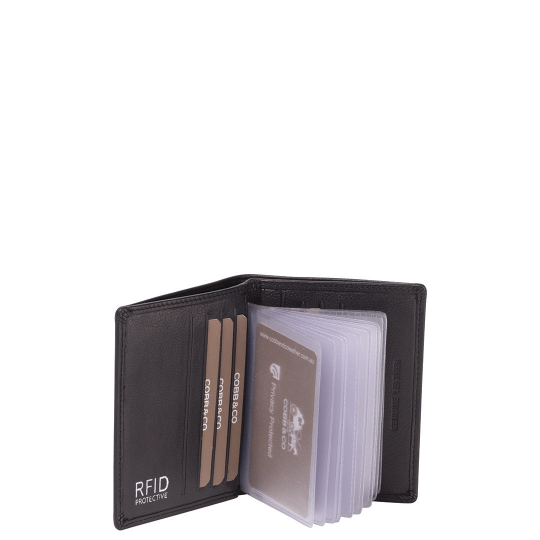 - This Nappa Leather card wallet features a built in shield that blocks radio frequencies embedded in your Credit Cards and IDs