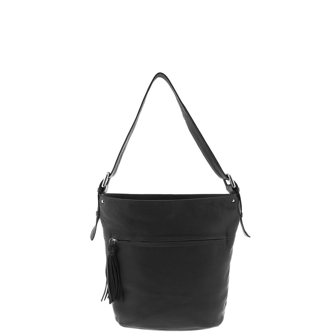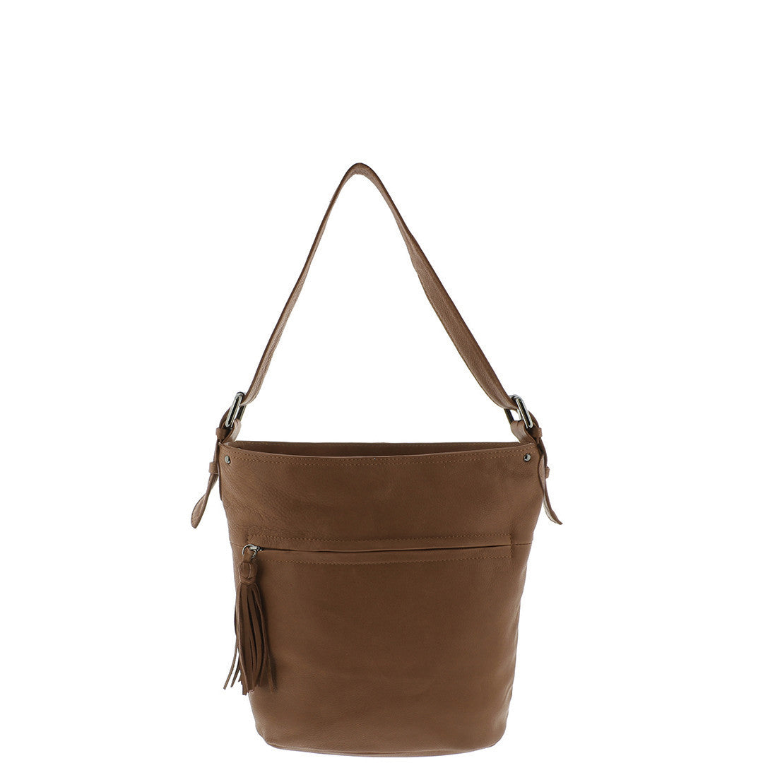This soft leather hobo bag is perfect for everyday use featuring an adjustable strap for versatility, and a spacious fully lined interior with zipper pocket .Kendall is complete with a front zipper compartment finished with a tassel detail. The perfect bag for when you are on-the-go.