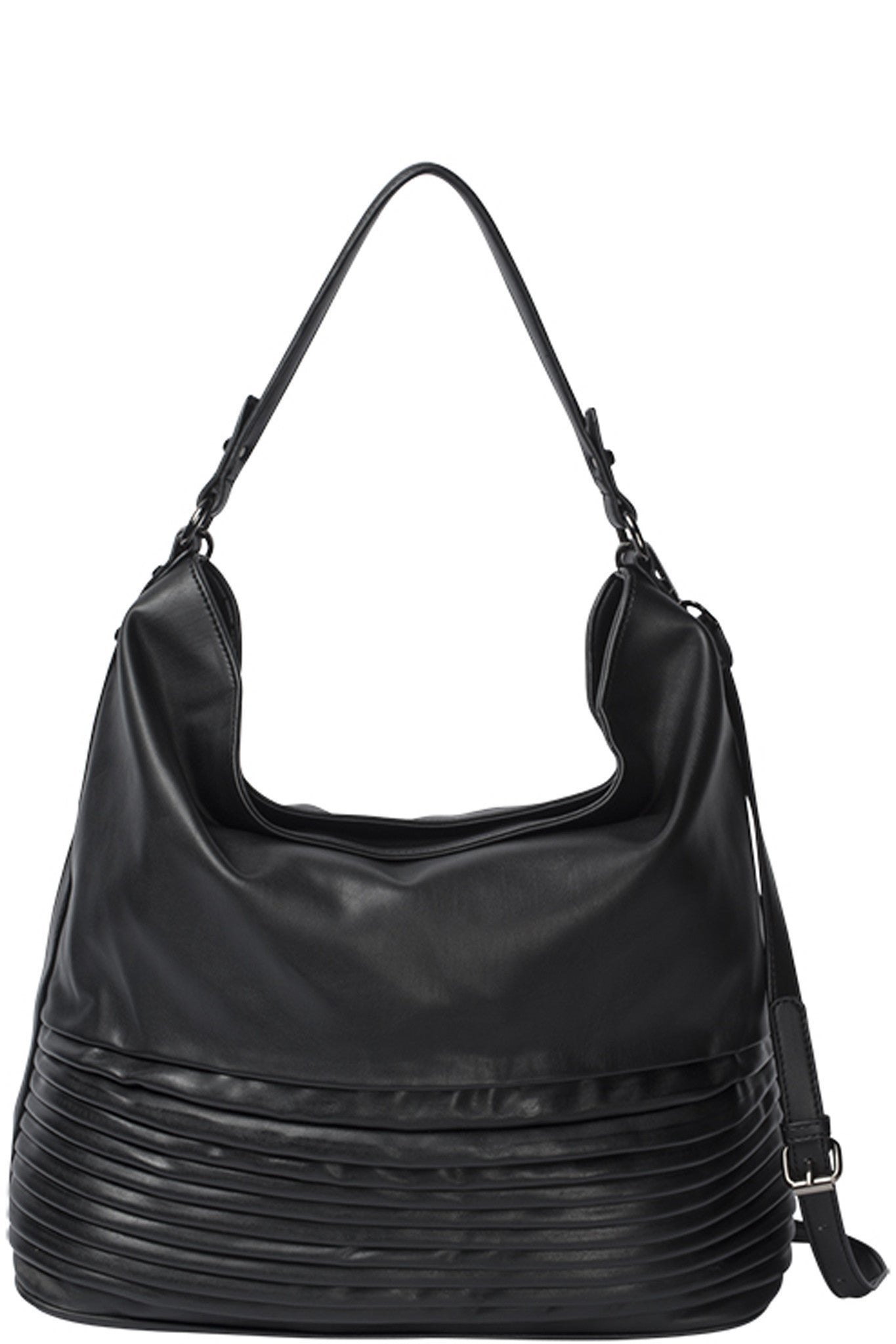 Jade is a soft faux leather hobo bag with single handle and detachable long strap. There is gorgeous pleating detail on bottom front and an zip pocket on the back of the hobo. Jade has a sleek style and is perfect as an everyday handbag.